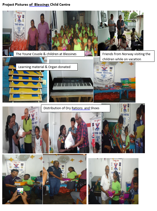 Elizabeth and Margerette of Norway donated Rs.120,000/- through Young Moratuwa club to the Blessings Child Care Centre for a Christmas Party which was held on 21st December. Members attended the function and distributed shoes and toys to the children and distributed dry rations to their parents. Also distributed soft toys to the children which was a gift from a well wisher.