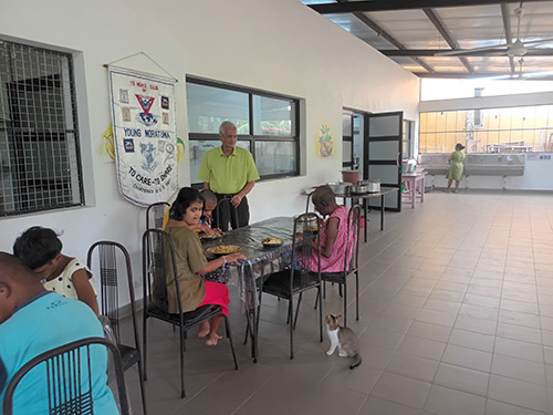 Mnt Jeyam Kandiah of the Dehiwela Mnts club, provides cooked meals for the elders at the Madapatha Elders Home Piliyandala in May 2015 |